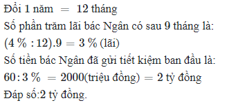 Số phần trăm lãi bác Ngân có sau `9` tháng là: