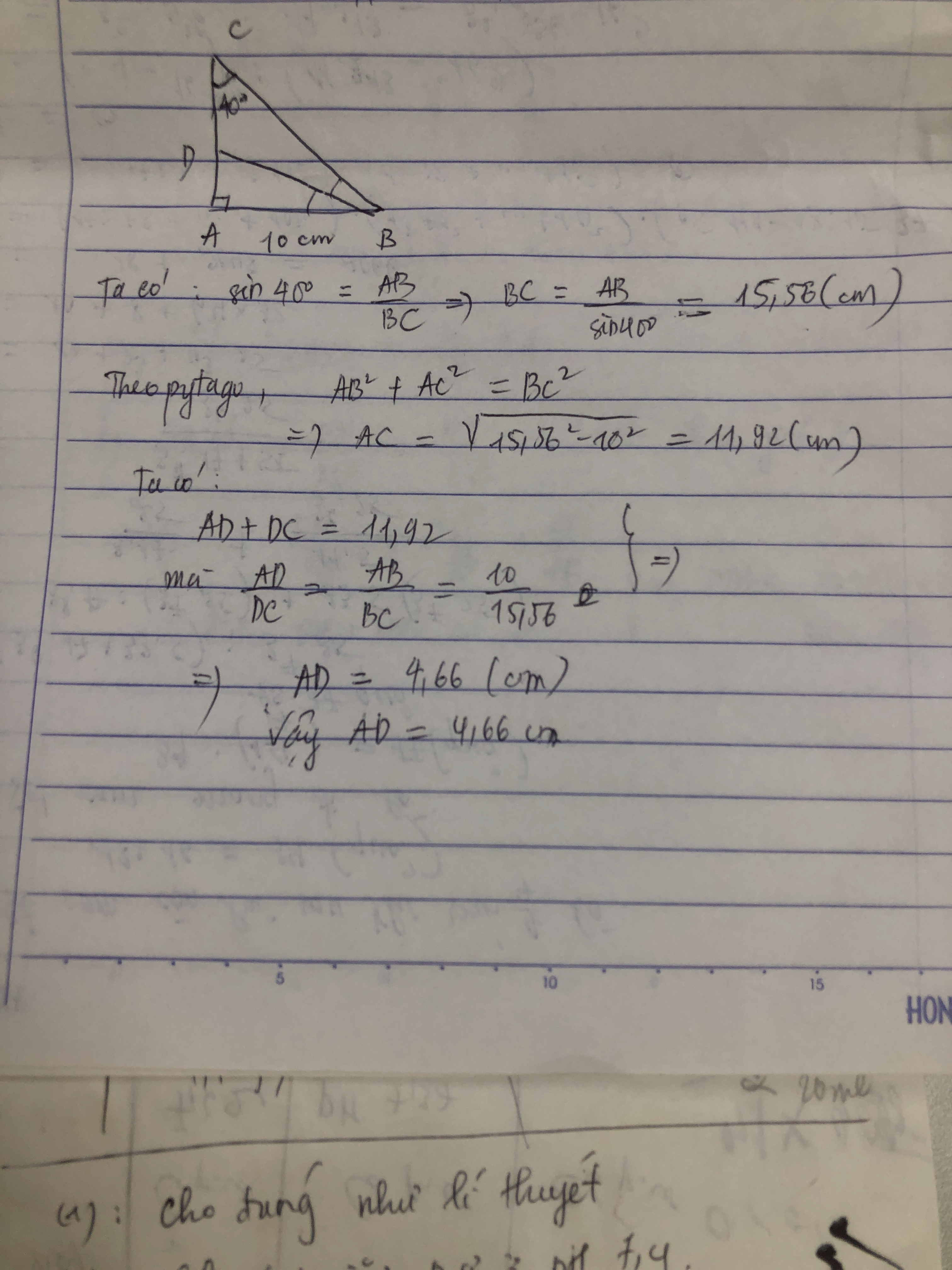 b, kẻ tia phân giác BD của tam giác ABC(D thuộc AC). tính AD( làm tròn đến số thập phân thứ 2)