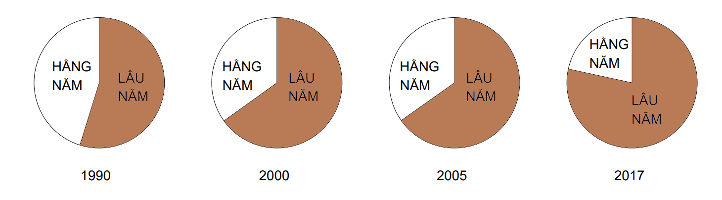 Cho bảng số liệu: Diện tích cây công nghiệp lâu năm và cây công nghiệp hàng năm ở nước ta giai đoạn 1990-2017 (đơn vị: nghìn ha)
