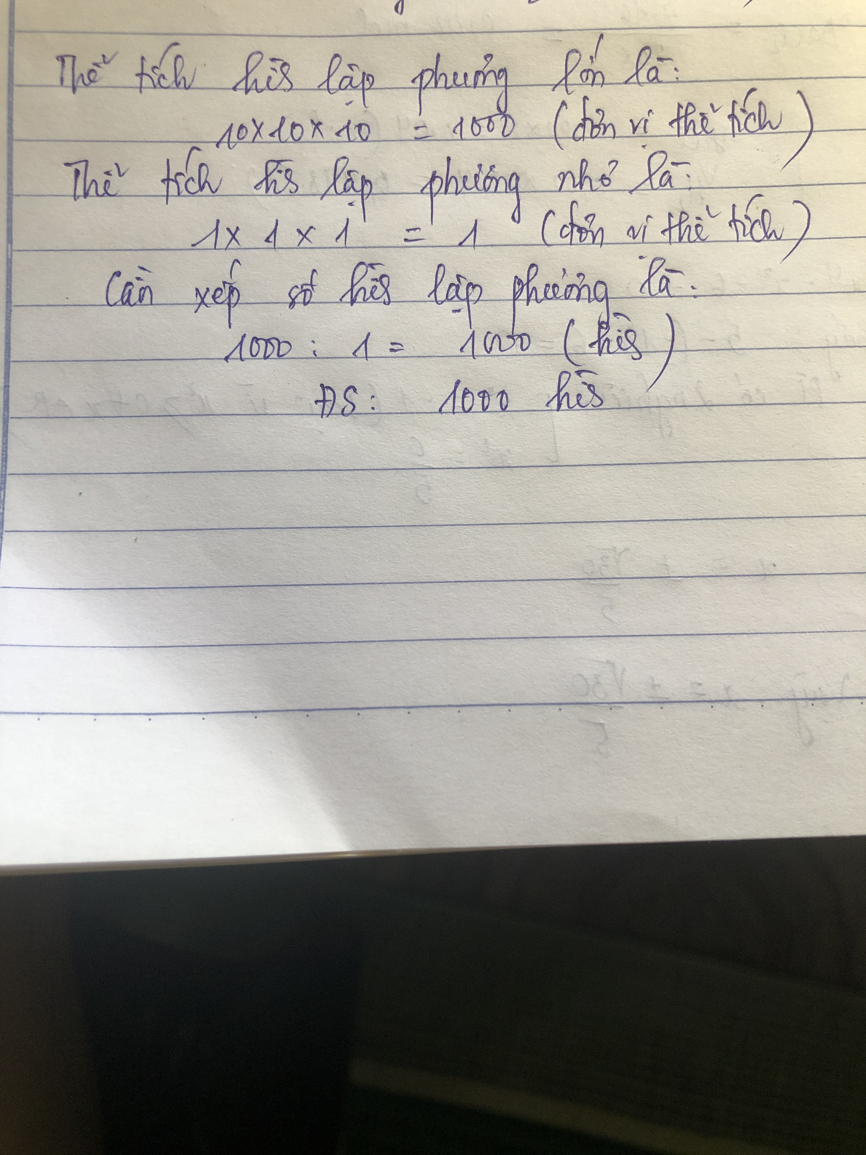 Có 512 hình lập phương đơn vị ( cạnh dài một đơn vị ) . Hỏi cần bao nhiêu hình lập phương đơn vị để xếp thành một hình lập phương độ dài cạnh 10 đơn vị