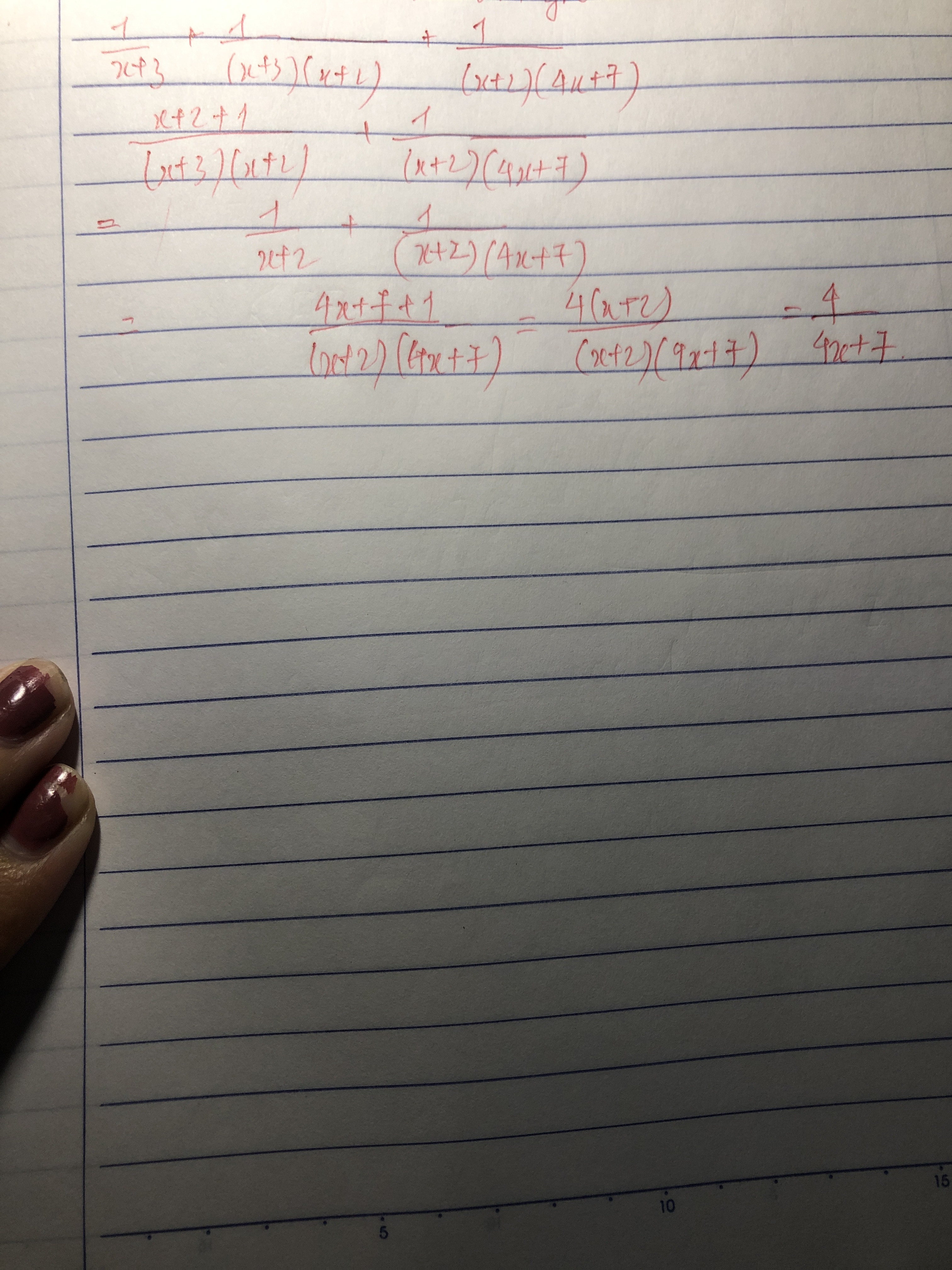 1/x+3+1/(x+3)(x+2)+1/(x+2)(4x+7)