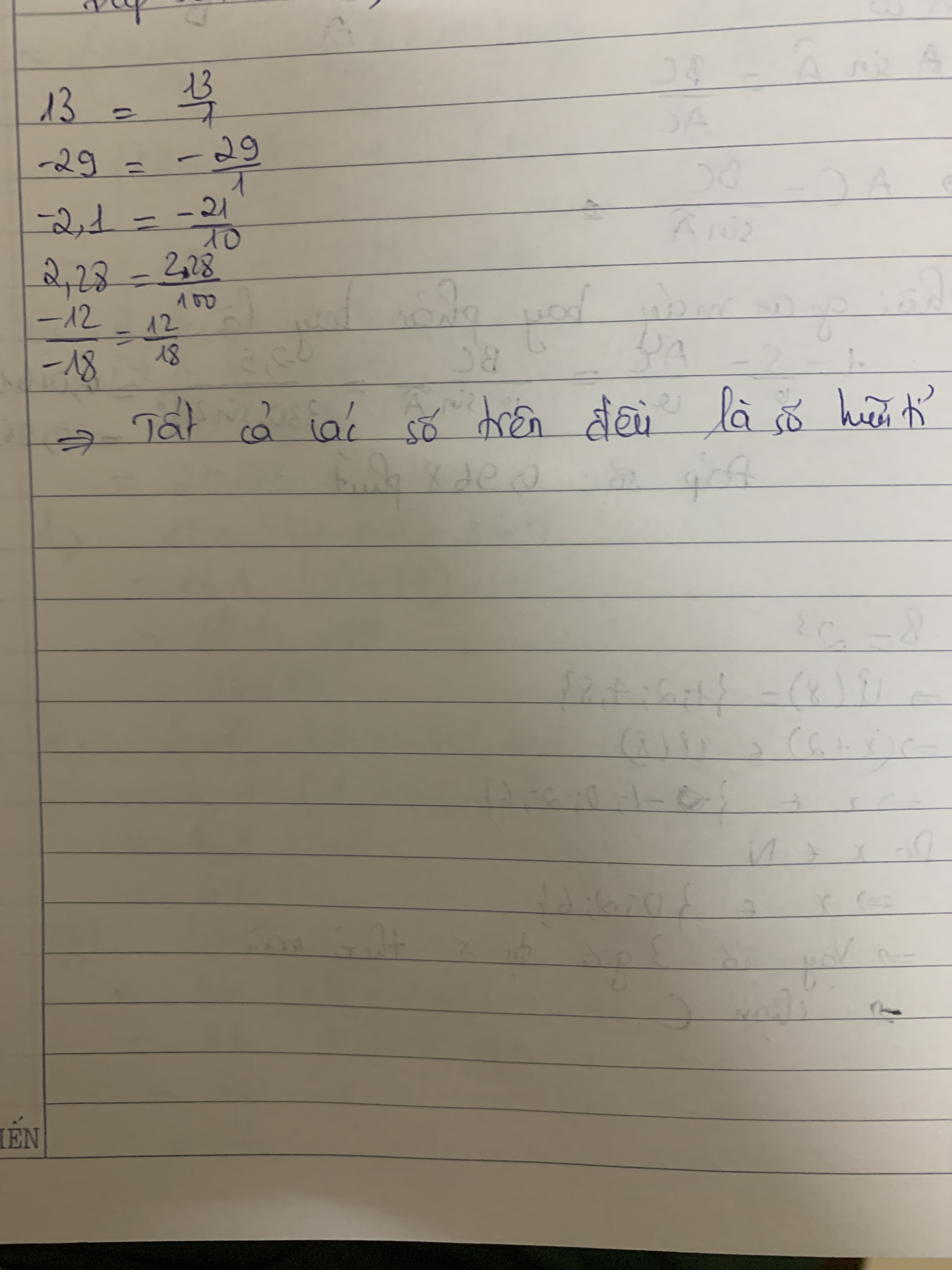 Các số 13, -29,-2.1,2.28,-12/-18 có phải là số hữu tỉ không? vì sao?