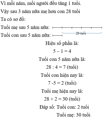 28 : ( 5 - 1 ) = 7 ( tuổi )