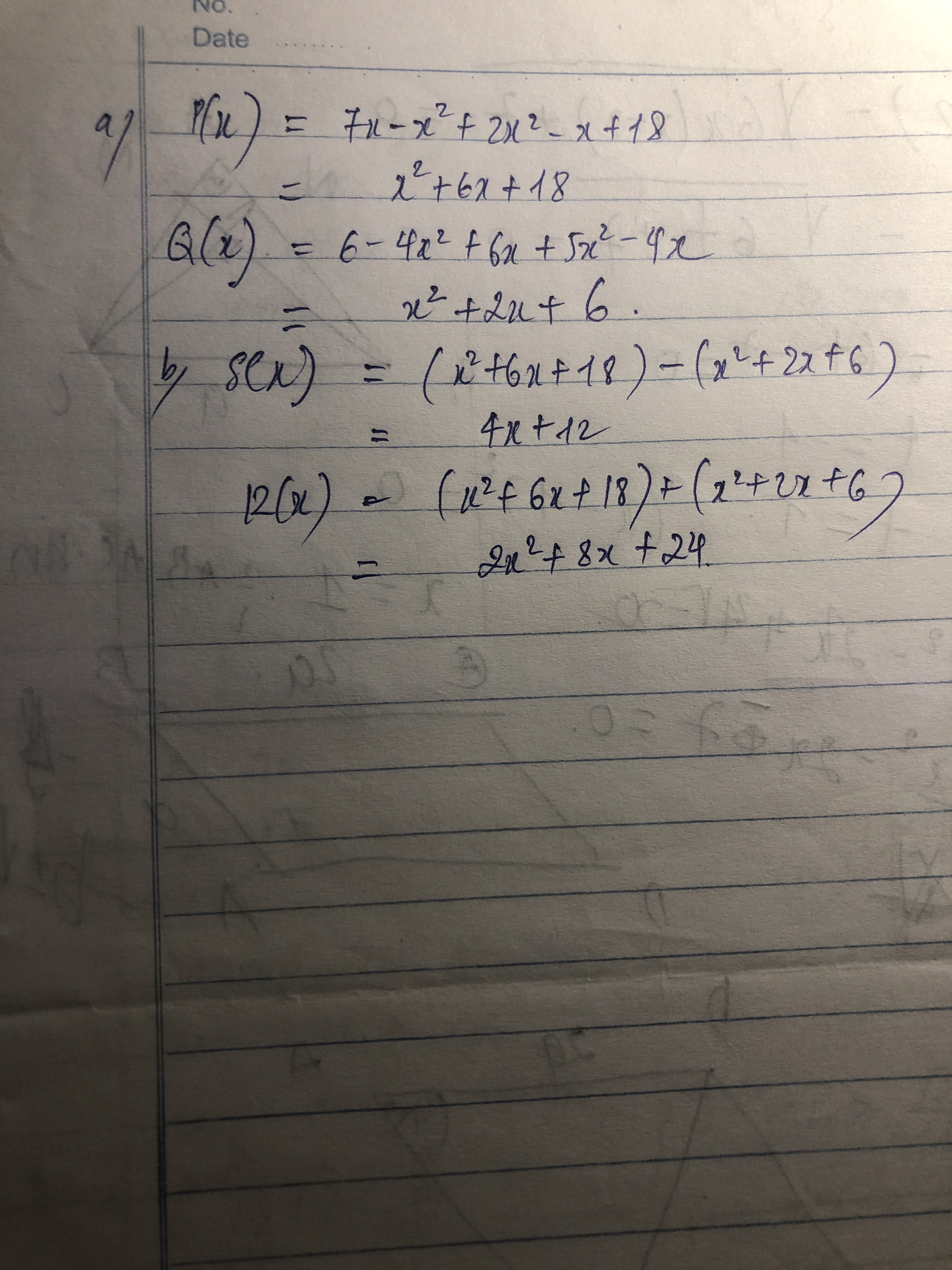 Cho 2 đa thức : P(x) = 7x-x^2+2x^2-x+18
