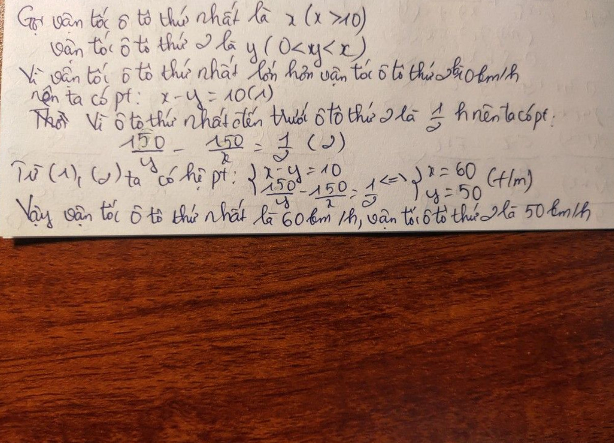 => vận tốc của ô tô thứ nhất là (x+10) km/h