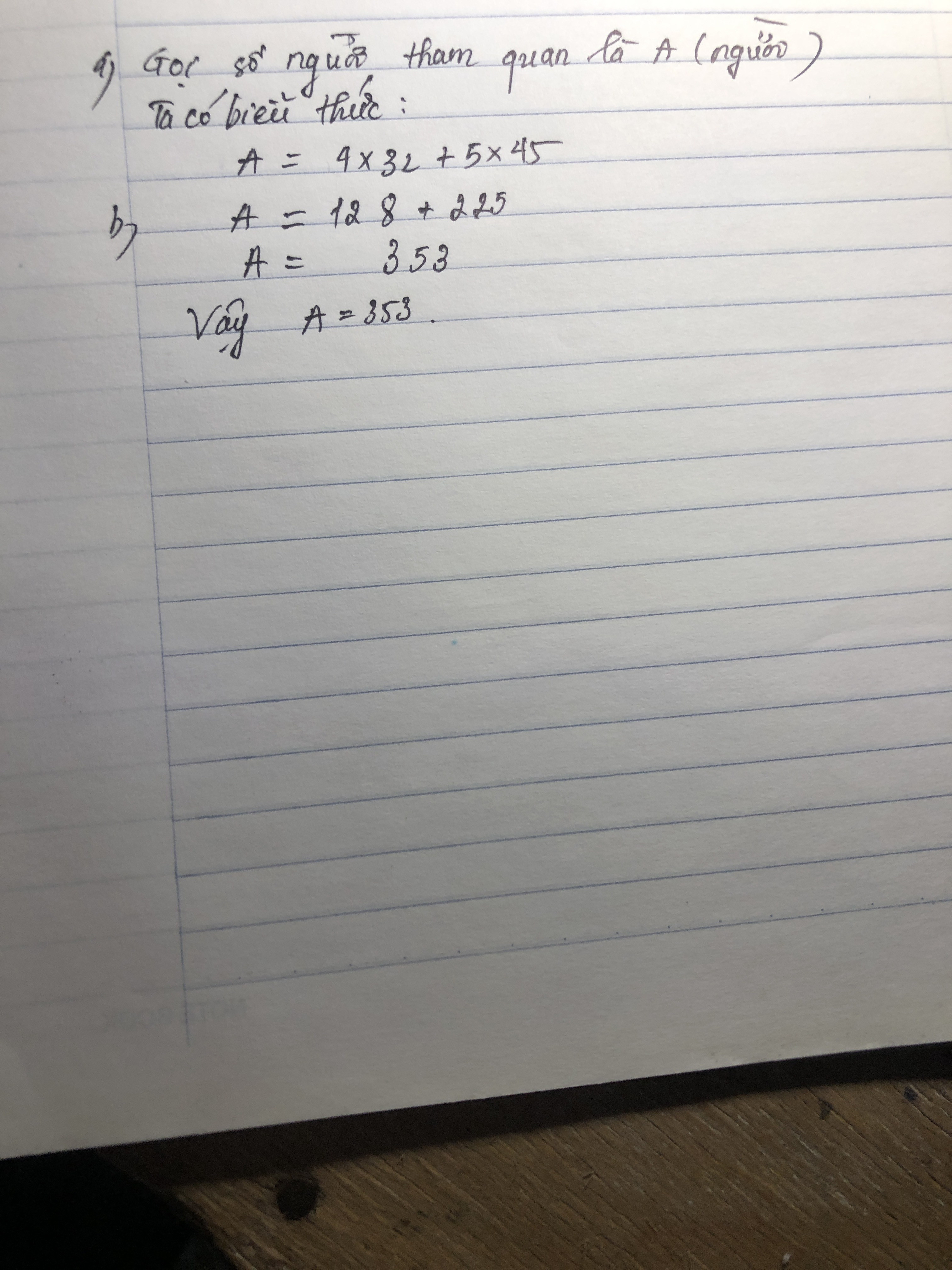 32 . 4 + 45 . 5 = 128 + 225 = 353 ( người )