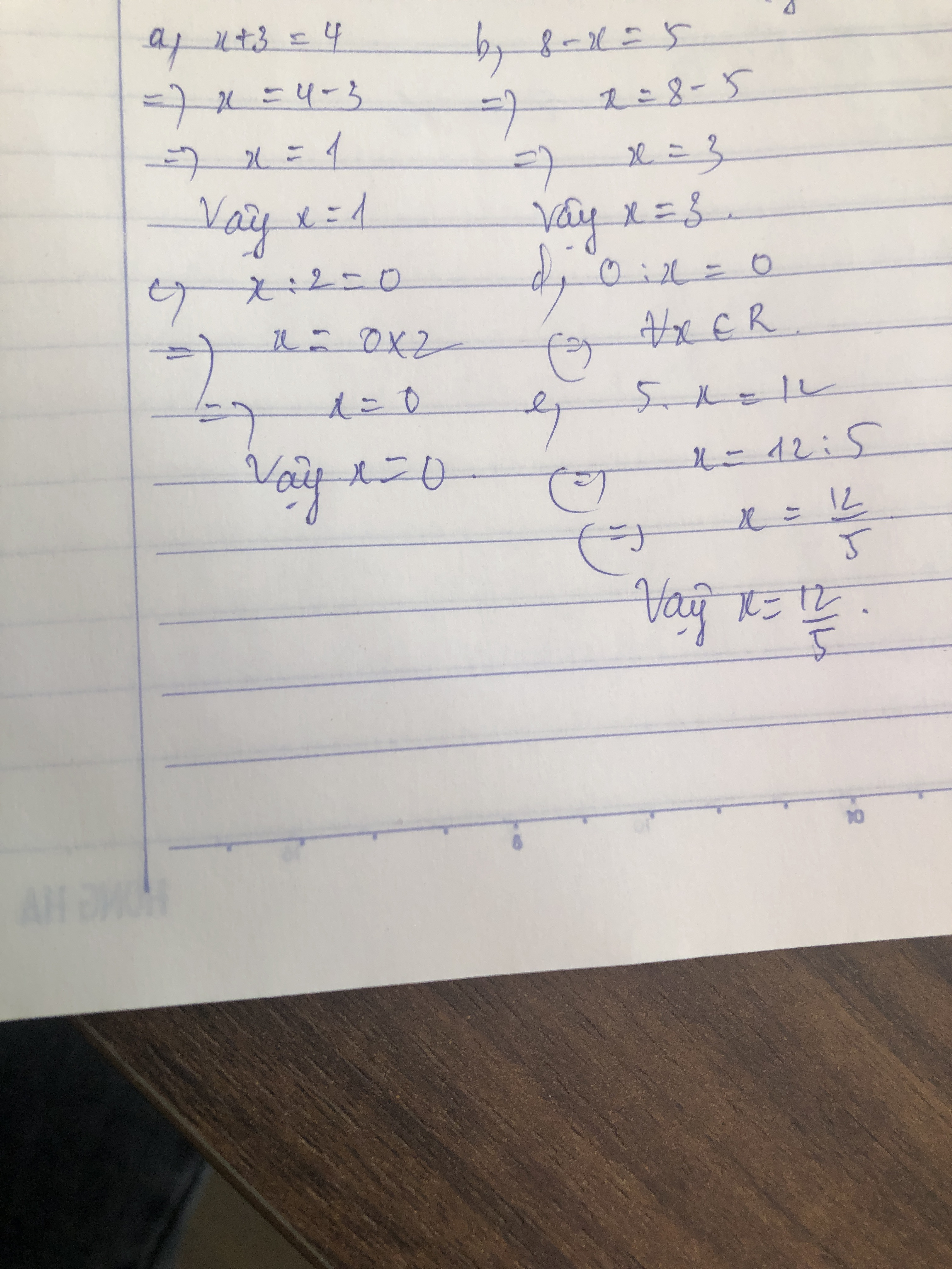 e) 5 x X = 12 => x = 12 : 5 => x = 12/5
