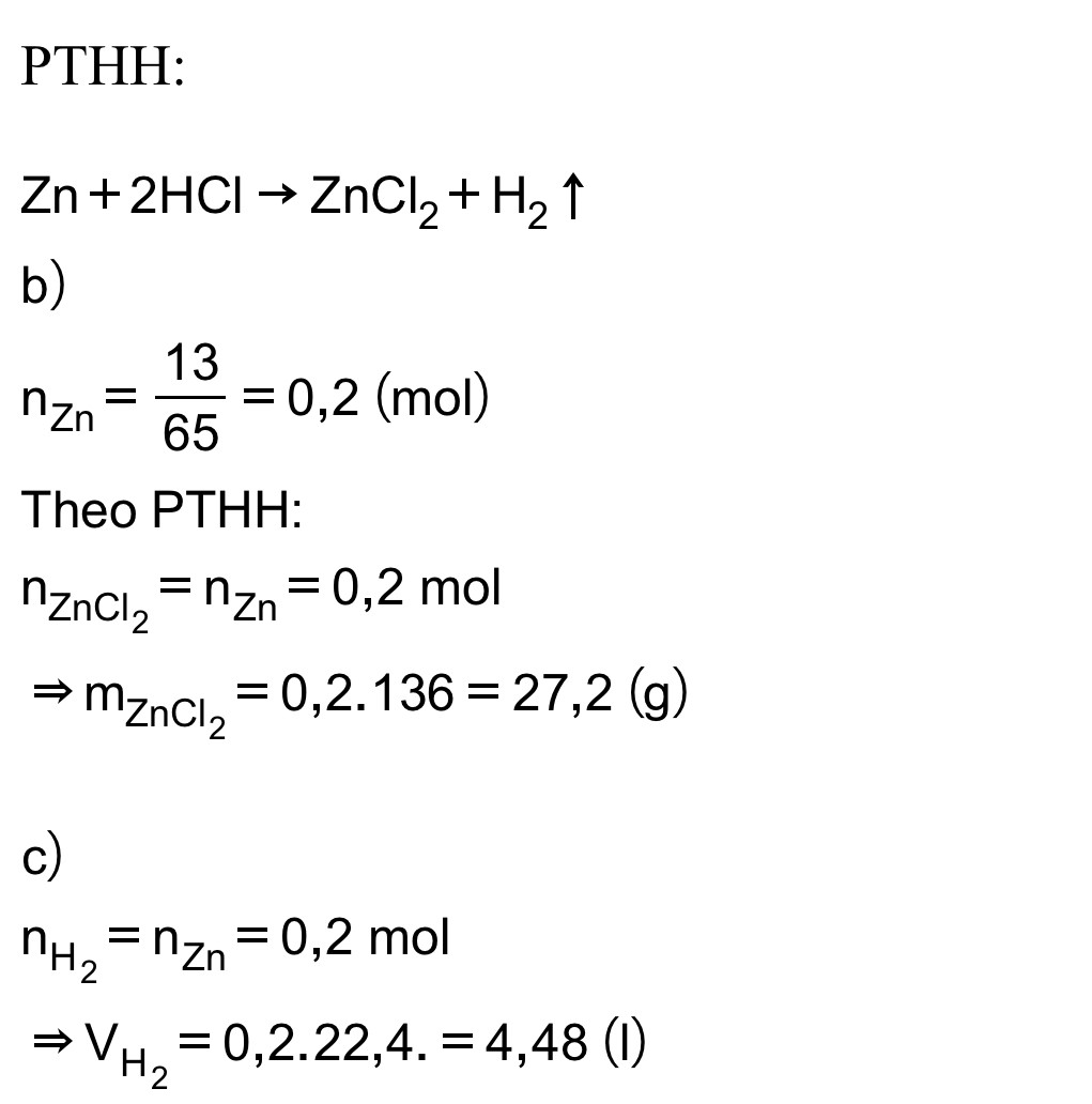 1. Hòa tan hoàn toàn 13g Zinc vào đ HCL thu đc ZnCl2 & khí H2