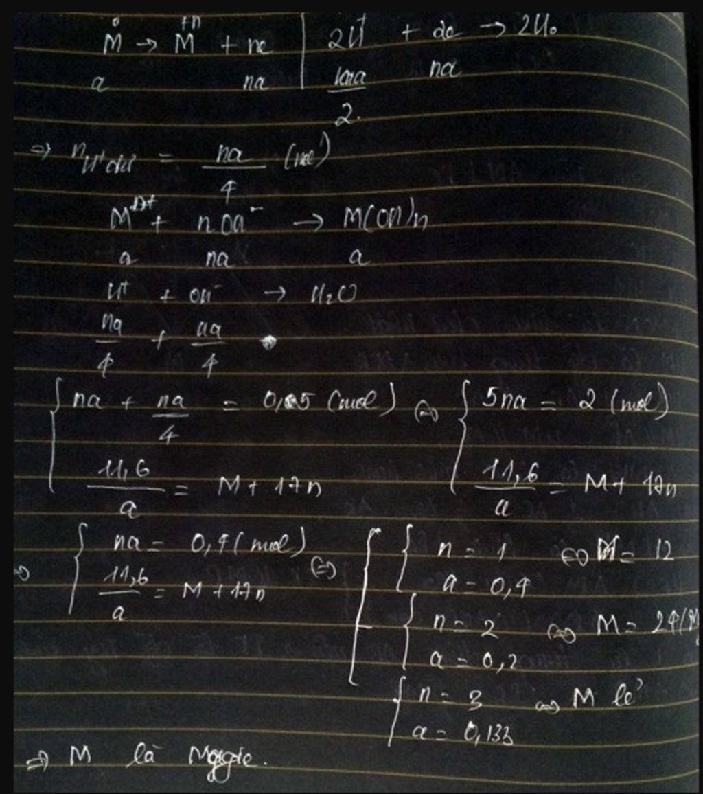 Hòa tan kim loại M trong dd H2SO4 loãng, lấy dư 25% so với lượng cần dùng để hòa tan M, được dd T. Cho T tác dụng với vừa đủ với 500ml dd NaOH 1M thu được 11,6g kết tủa. Tìm tên M?
