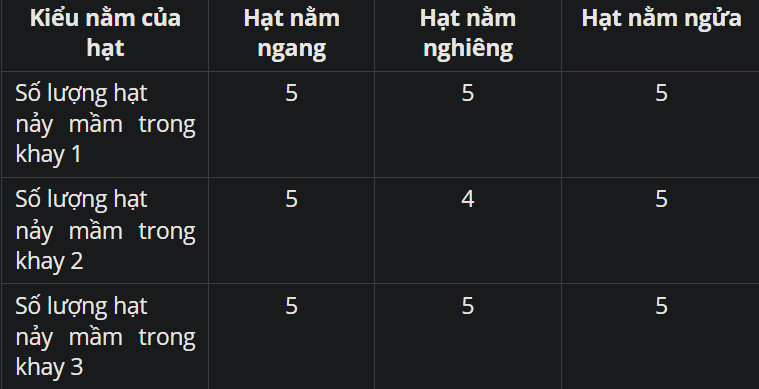 Số hạt nảy mầm ứng với ba kiểu nằm của hạt: