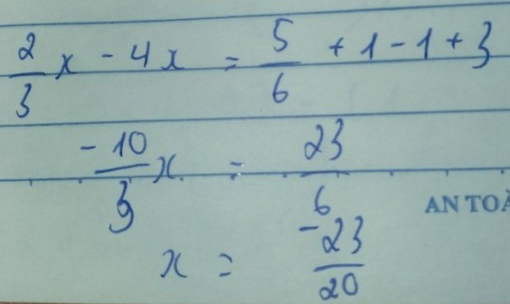 `2/3.x-1-4.x+1-3=5/6`