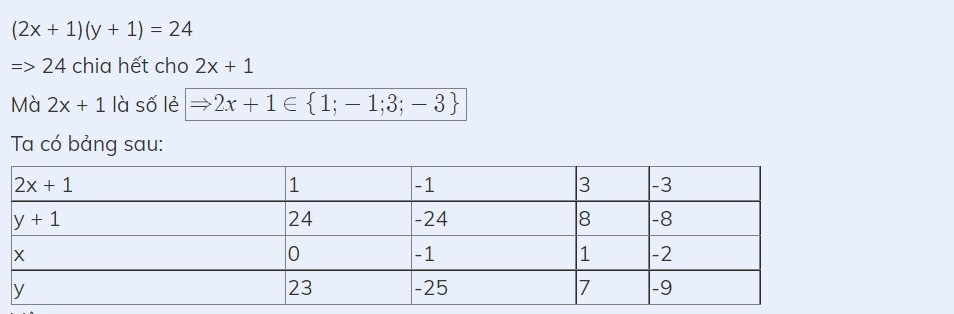 Tìm cặp số tự nhiên x,y biết: (2x-1)(y+2)=24