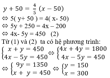 Khi chuyển 50 cuốn từ giá thứ nhất sang giá thứ hai thì số sách ở giá thứ nhất khi đó là x- 50 và số sách ở giá thứ hai là y+ 50