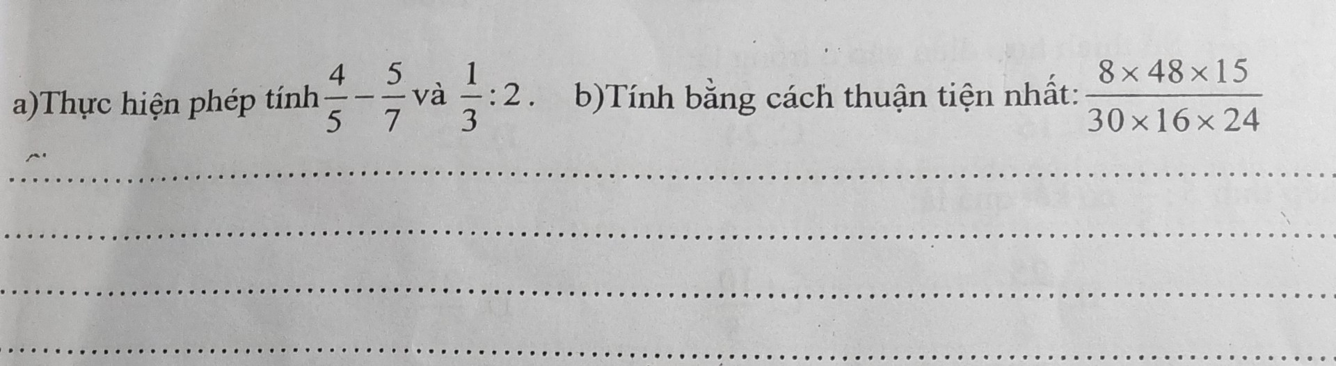 A.Thực hiện phép tính 4/5 - 5/7 và 1/3 ÷2.