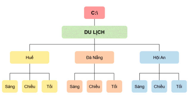 Trong một chuyến du lịch cùng gia đình, em đã ghi lại thông tin và chụp nhiều ảnh kỉ niệm. Các hình ảnh và thông tin đó cần được lưu trữ. Hãy vẽ sơ đồ cây thư mực để chứa các tệp dữ liệu và đặt tên cho các thư mục đó sao cho dễ tìm kiếm và truy cập.