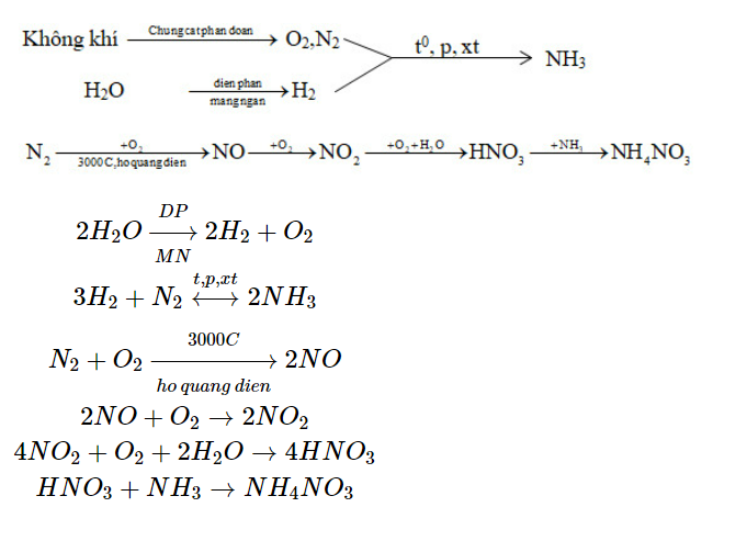 Từ không khí, than, nước và các chất xúc tác cần thiết, hãy lập sơ đồ điều chế phân đạm NH4NO3.