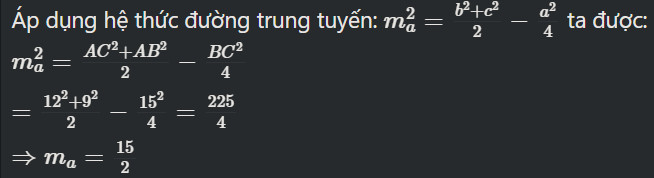 Tính diện tích tam giác ABC biết AB=9cm AC=12cm BC=15cm