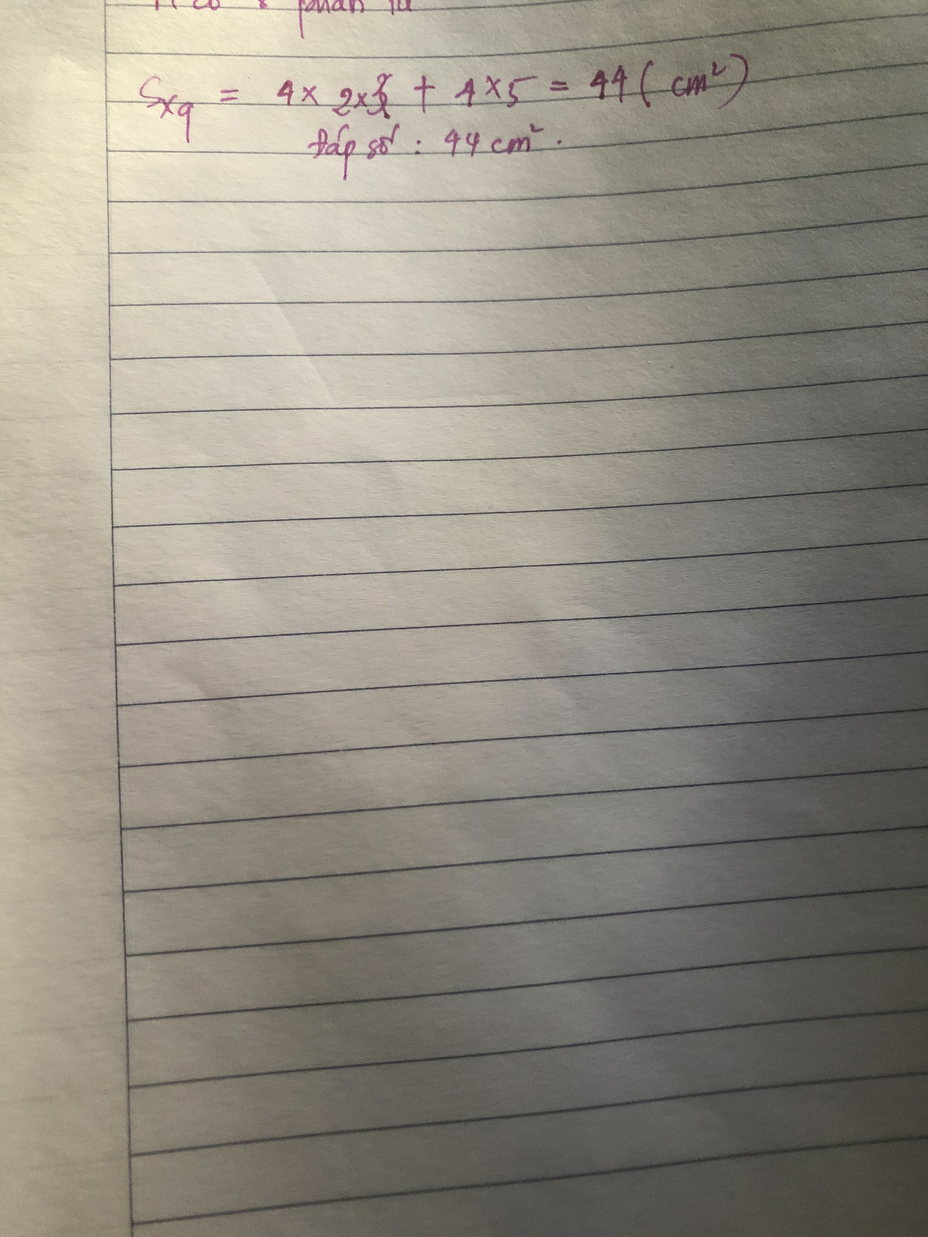 Cho hình lăng trụ đứng ABC.A’BC, trong đó tam giác ABC vuông cân AB = AC = 3cm, BC = 5 cm, AA’= 4cm. Tính Sxq lăng trụ đó