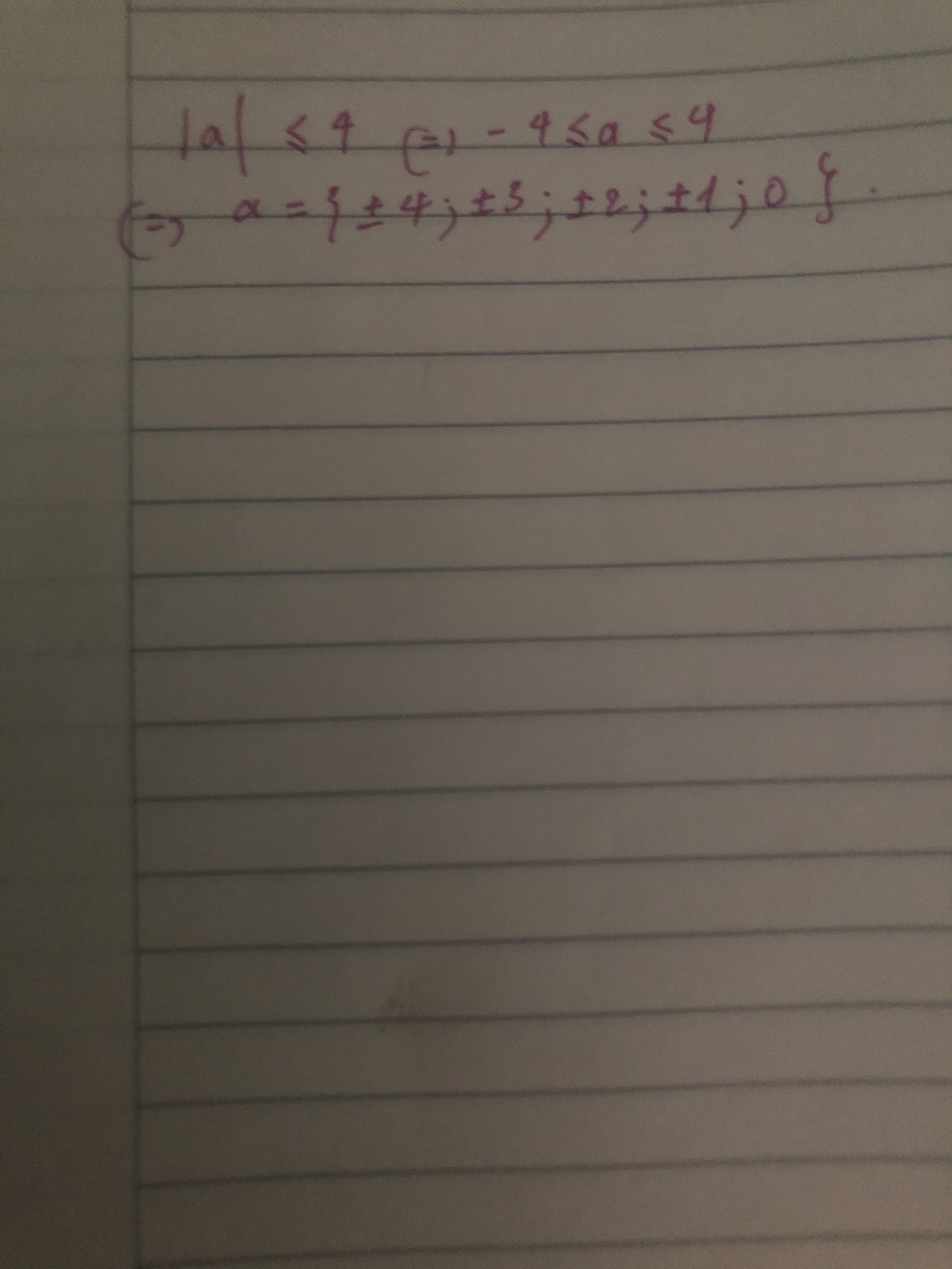 Tìm tất cả các số nguyên a biết giá trị tuyệt đối của a bé hơn hoặc bằng 4