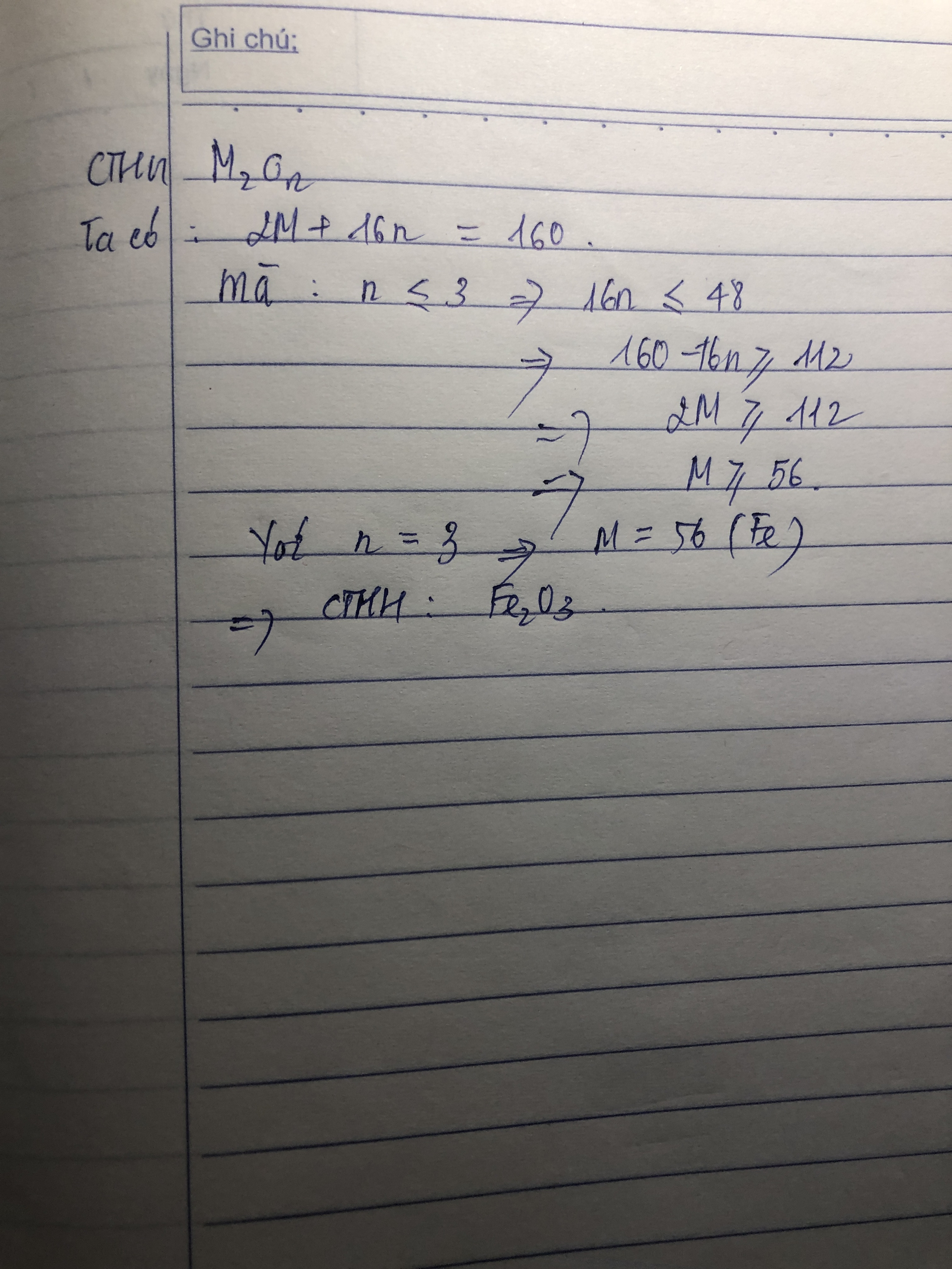 Một hợp chất có CTHH như sau: M2On (n: hóa trị của M và có giá trị không quá 3), hợp chất đó có PTK bằng 160. Xác định CTHH của hợp chất trên?