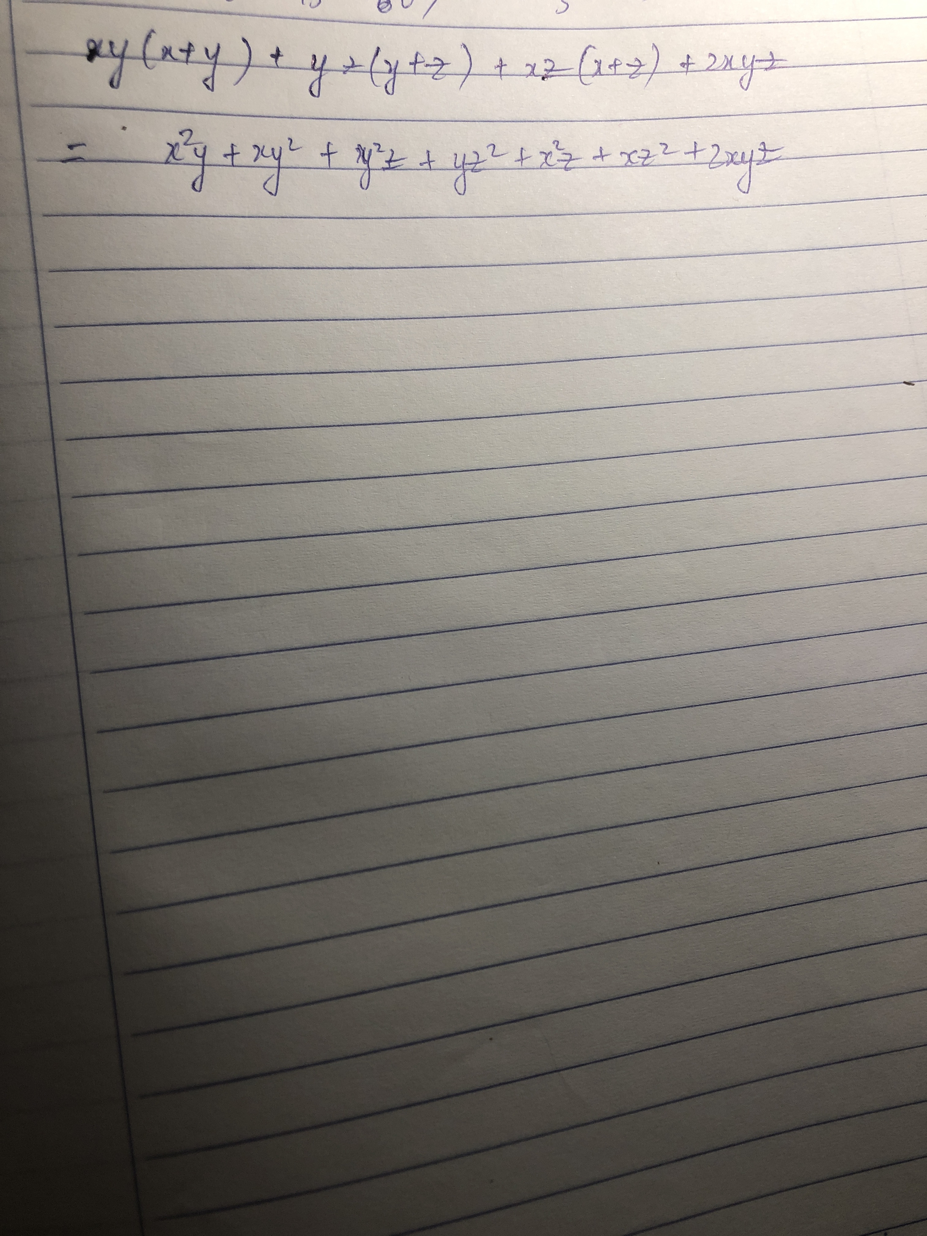 xy(x+y)+yz(y+z)+xz(x+z)+2xyz