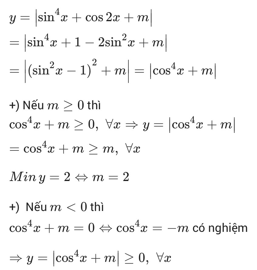 ⇒ Không có giá trị của m để hàm số có GTNN bằng 2.