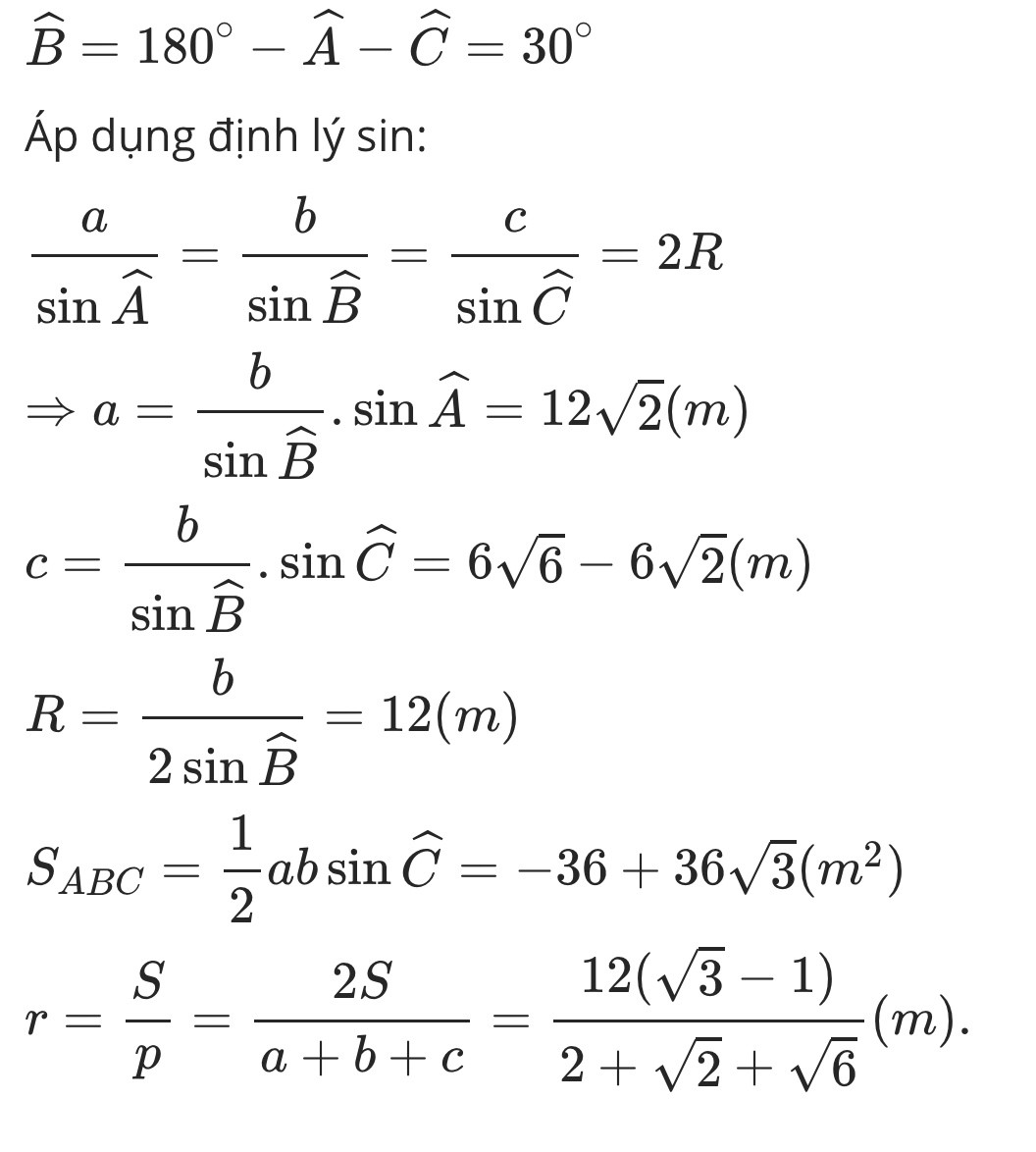 Cho tam giác ABC có A=135° C=15° và b=12 tính a,c,R và số đo góc B