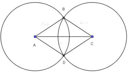 - Bước 3. Dùng compa vẽ một phần đường tròn tâm C bán kính 4 cm; phần đường tròn này cắt phần đường tròn tâm A vẽ ở Bước 2 tại các điểm B và D.