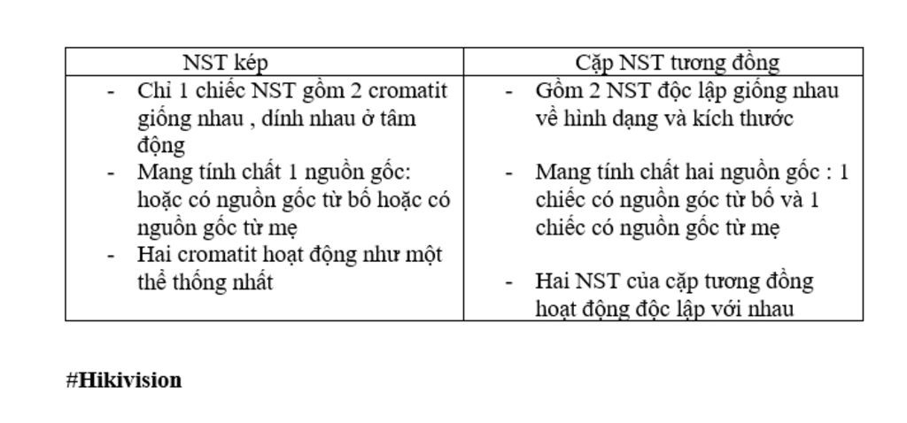 - NST kép: gồm 2 crômatit giống hệt nhau và dính với nhau ở tâm động, hoặc có nguồn gốc từ bố hoặc có nguồn gốc từ mẹ.