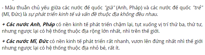 hệ quả mâu thuẫn giử các nước đế quốc già và các nước đế quốc trẻ là gì?