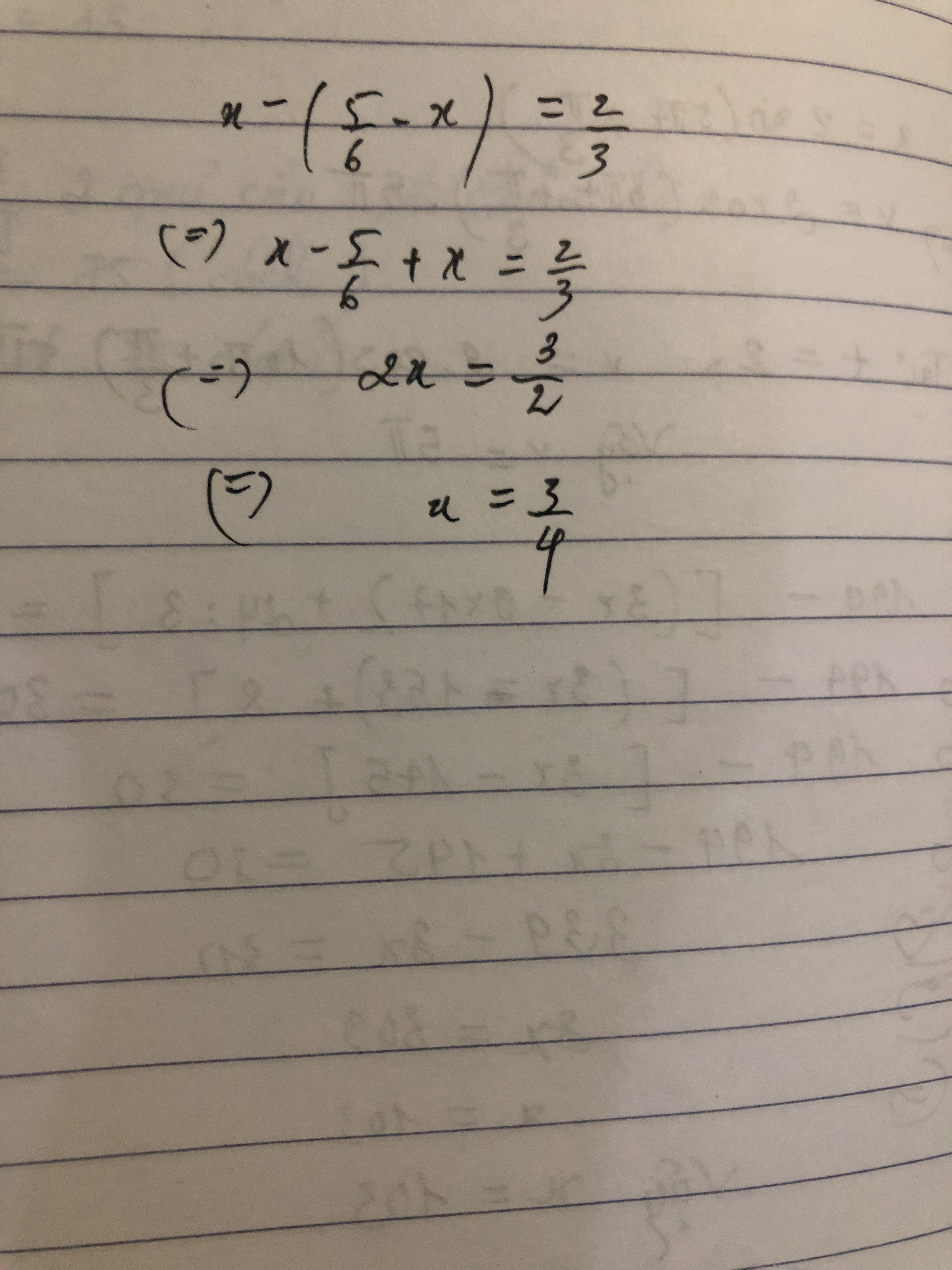 x- (5/6-x) = 2/3