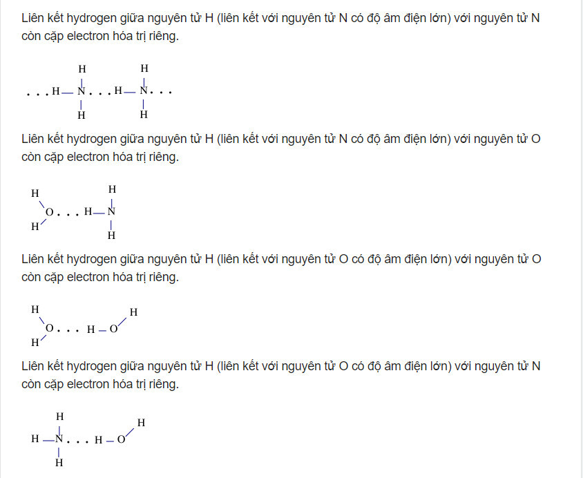 H2O, NH3 có tất cả bao nhiêu kiểu liên kết hydrogen ? Vẽ các kiểu liên kết ấy