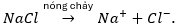 Khi NaCl được điện phân ở trạng thái nóng chảy (không có nước), các ion trong NaCl phân li hoàn toàn thành: