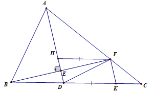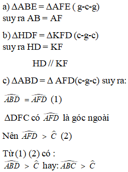 b) qua f Vẽ đường thẳng song song với BC cắt AE tại H lấy điểm K nằm giữa D và C sao cho FH = DK chứng minh DH =KF Và DH//FK