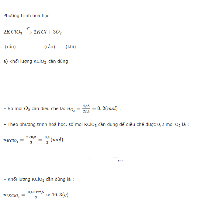 a)Muốn điều chế được 4,48 lít khí oxi(đktc)cần dùng bao nhiêu gam KClO3?