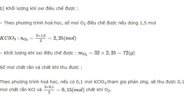 b)Nếu có 1,5 mol KClO3 tham gia phản ứng,sẽ thu được bao nhiêu gam khí oxi?