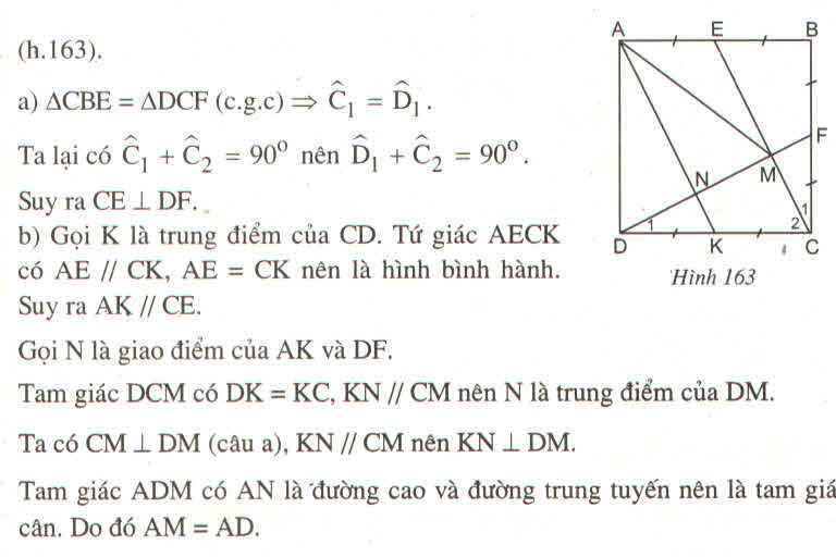 cho hình vuông ABCD và E,F theo thứ tự là trung điểm của AB,BC