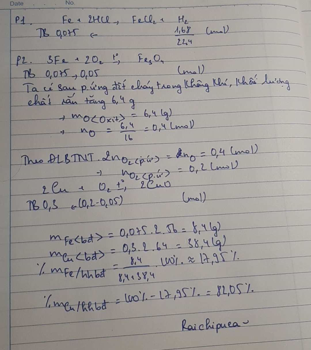 phần 2: Đốt cháy hoàn toàn trong không khí, sau phản ứng thấy khối lượng chất rắn tăng thêm 6.4 gam chất rắn