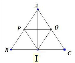 Cho tam giác ABC trung tuyến AI , qua I kẻ 1 đường thẳng song song với AC cắt AB tại P.qua I kẻ đường thẳng song song với AB cắt AC tại Q.