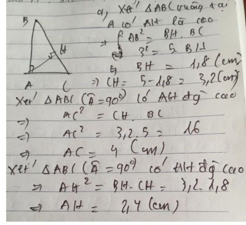 Cho tam giác ABC vuông tại A.đường cao AH cho biết AB=3cm BC=5cm