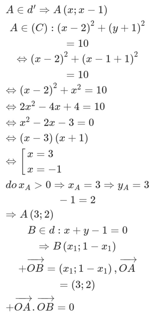 Biết điểm 4 thuộc đường tròn (C): (x-2) +(y+1) = 10, điểm B thuộc đường thẳng (d): x+ y-1=0.