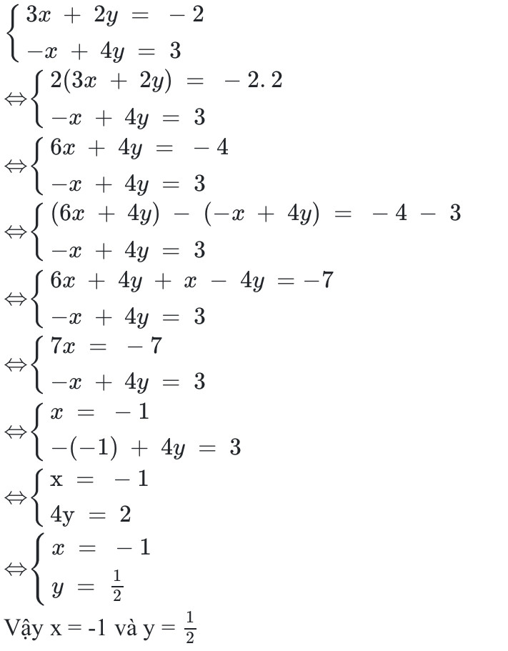 Câu 1: giả các hệ phương trình sau:3x+2y =-2 ;-x+4y=3