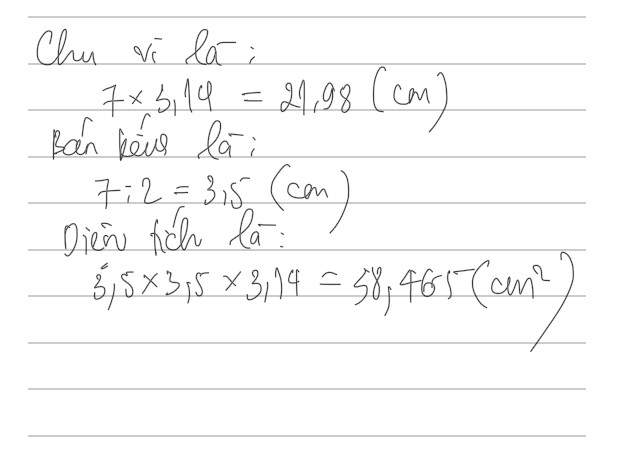 3,5 × 3,5 × 3,14 = 38.465 ( cm² )