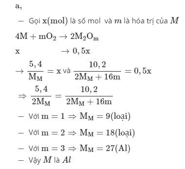 Đốt cháy hoàn toàn 5,4g một kim loại M (hóa trị ko đổi) trong O2 thu được 10,2g chất răn X
