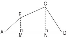 Mảnh đất đã cho được chia thành một hình thang vuông BMNC và hai hình tam giác vuông ABM, CND.