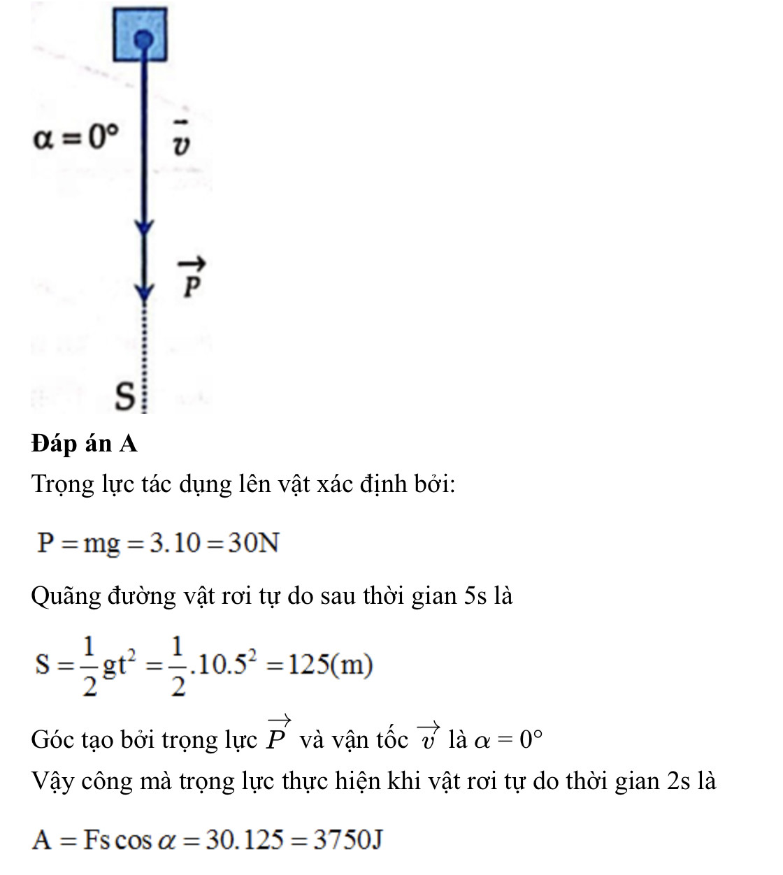 Một vật có m=3kg rơi tự do từ độ cao h không vận tốc đầu. Lấy g=10m/s^2. Tính A