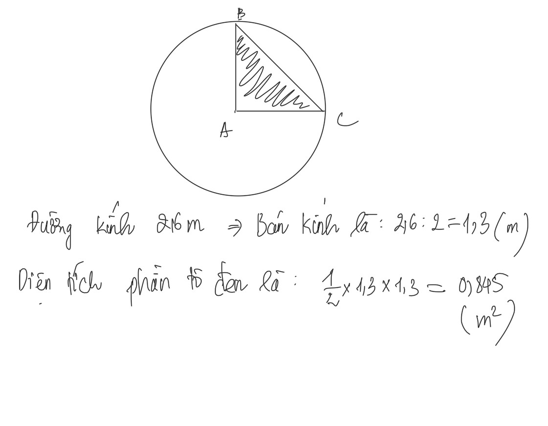 Tính diện tích phần hình được tô đậm , biết đường kính 2,6 m.