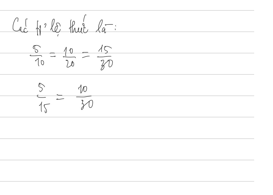 cho các số 5;10;15;20;30 hãy lập tất cả các tỉ lệ thức có thể có năm từ số đã cho