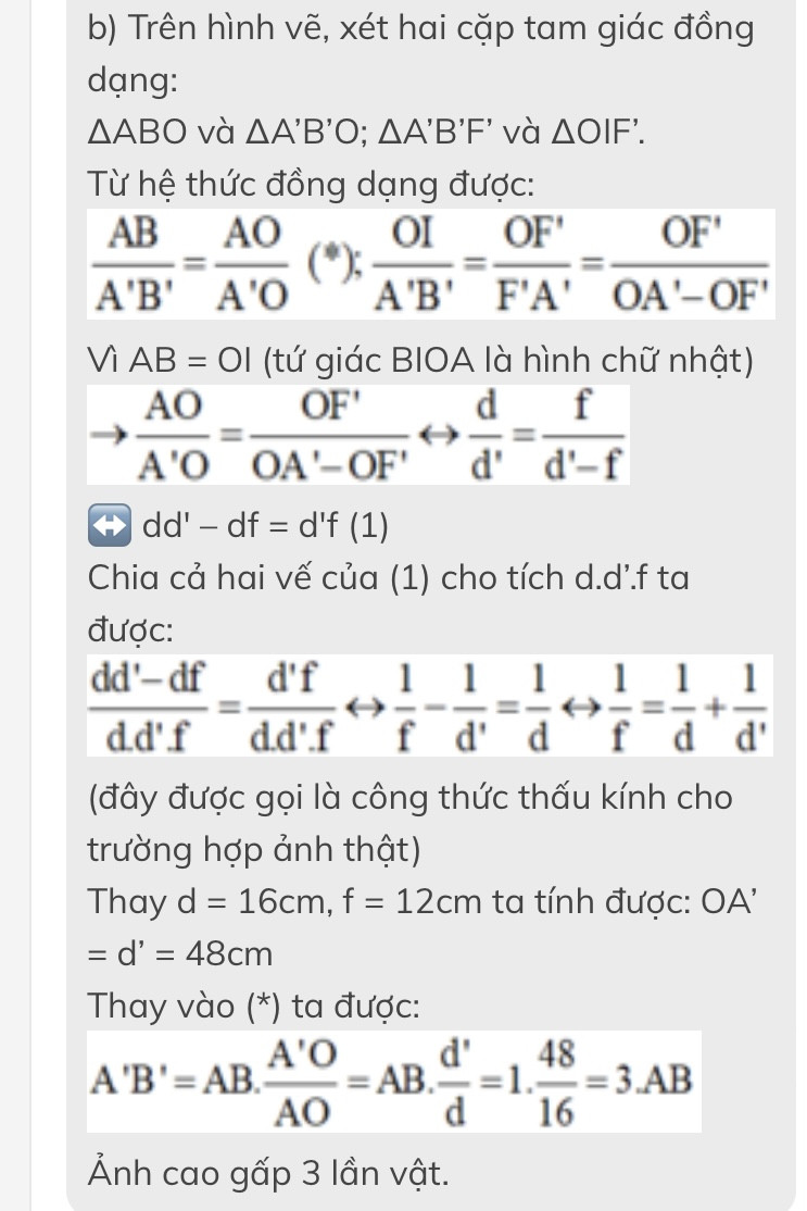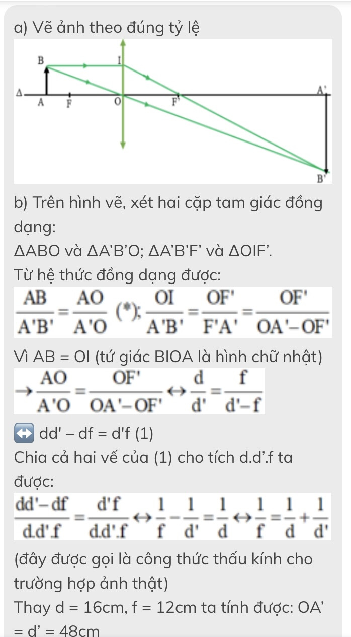 B :tính khoảng cách từ ảnh đến khấu kính và chiều Cao của ảnh