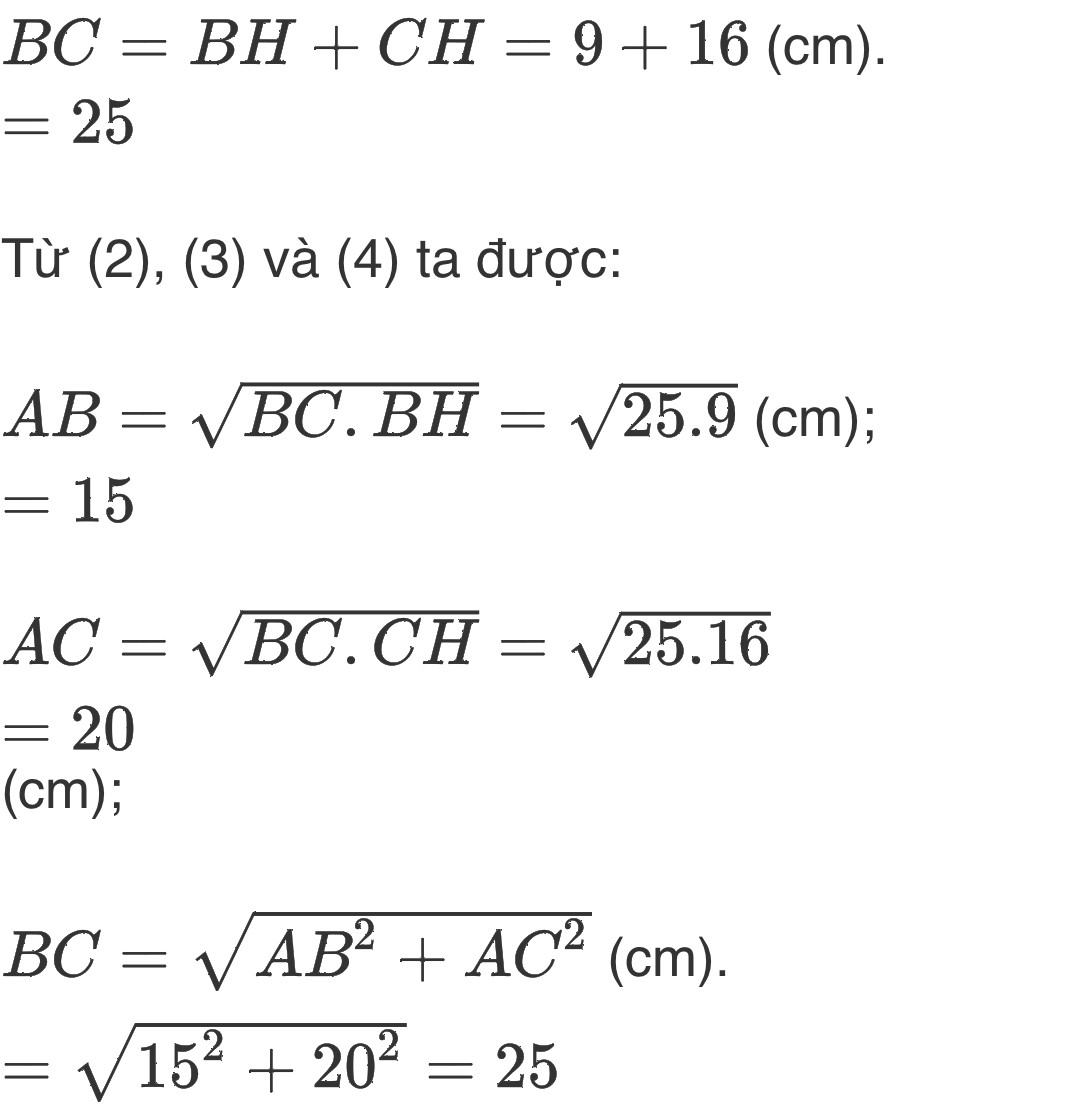 b ) Biết BH = 9cm, HC = 16cm. Tìm các cạnh của tam giác ABC.